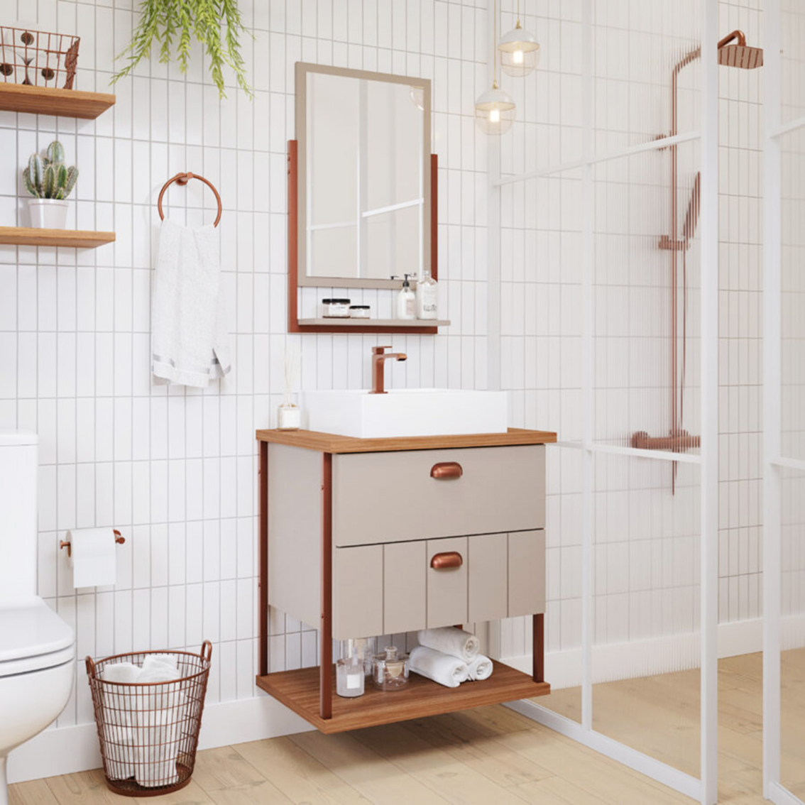 / Armário Uni 60cm Com Espelheira – Cappuccino/Freijo Mgm