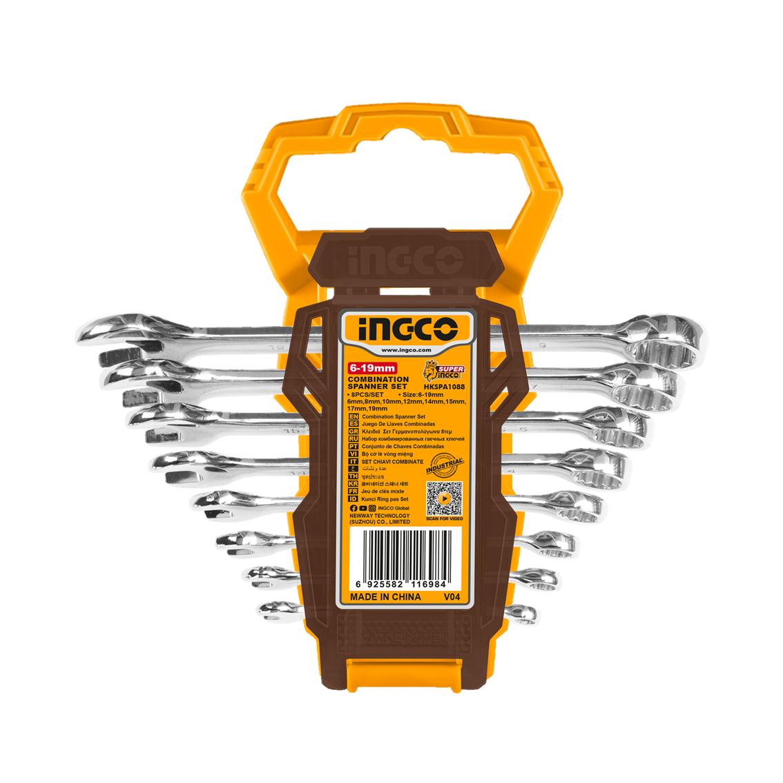 Conjunto de chaves combinadas de 8pcs Tamanho: 6-19mm 6mm, 8mm, 10mm, 12mm, 14mm, 15mm, 17mm, 19mm Polido fino Embalado em suporte de plástico