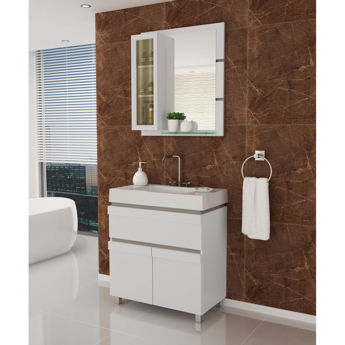 Kit Armário Balcony Bonfim 80 Com Pês Granito