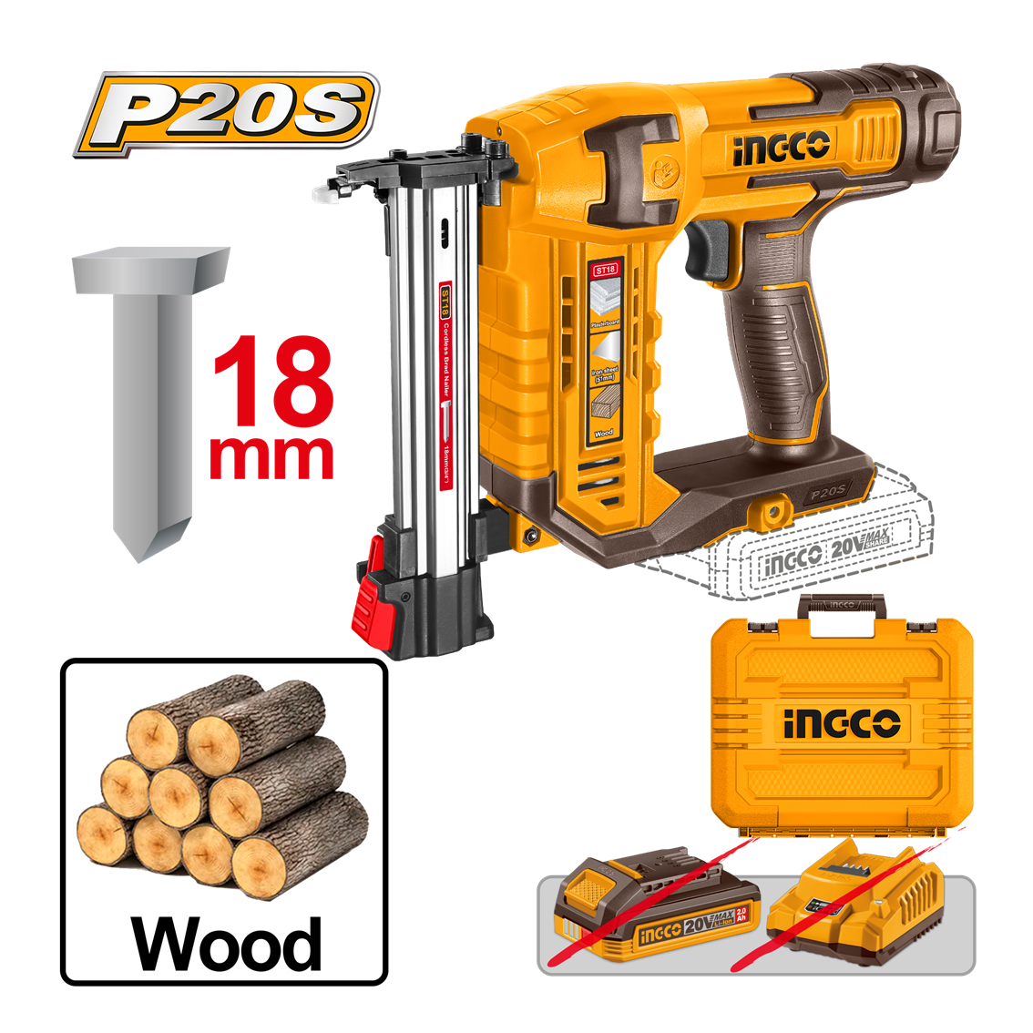 / PINADOR ST18MM (18MM) À BATERIA 20V INGCO CSTLI3805 (NAO ACOMPANHA BATERIA)